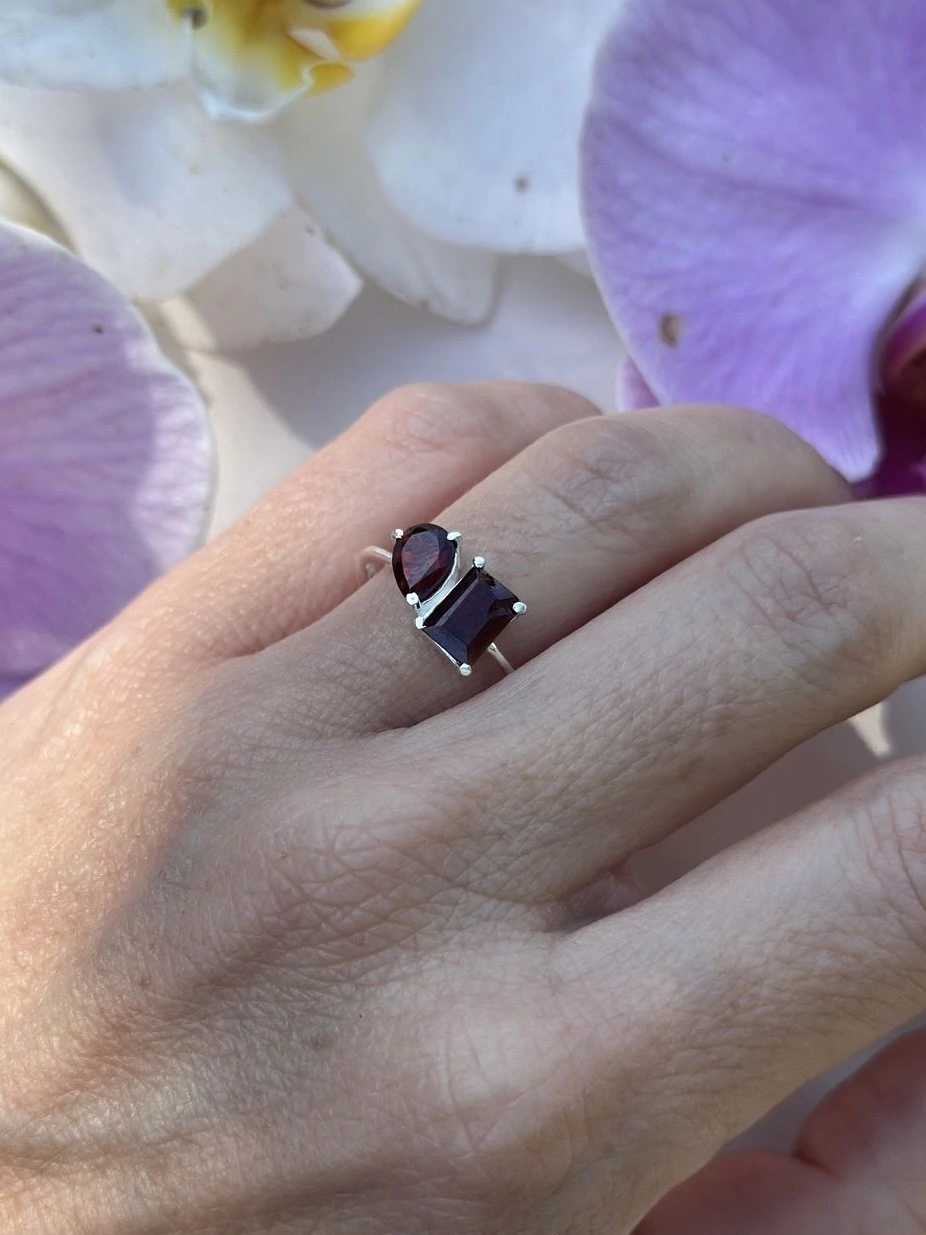 Anel com 2 pedras lapidadas, com linda combinação de cores e muito brilho que só as gemas naturais podem trazer!