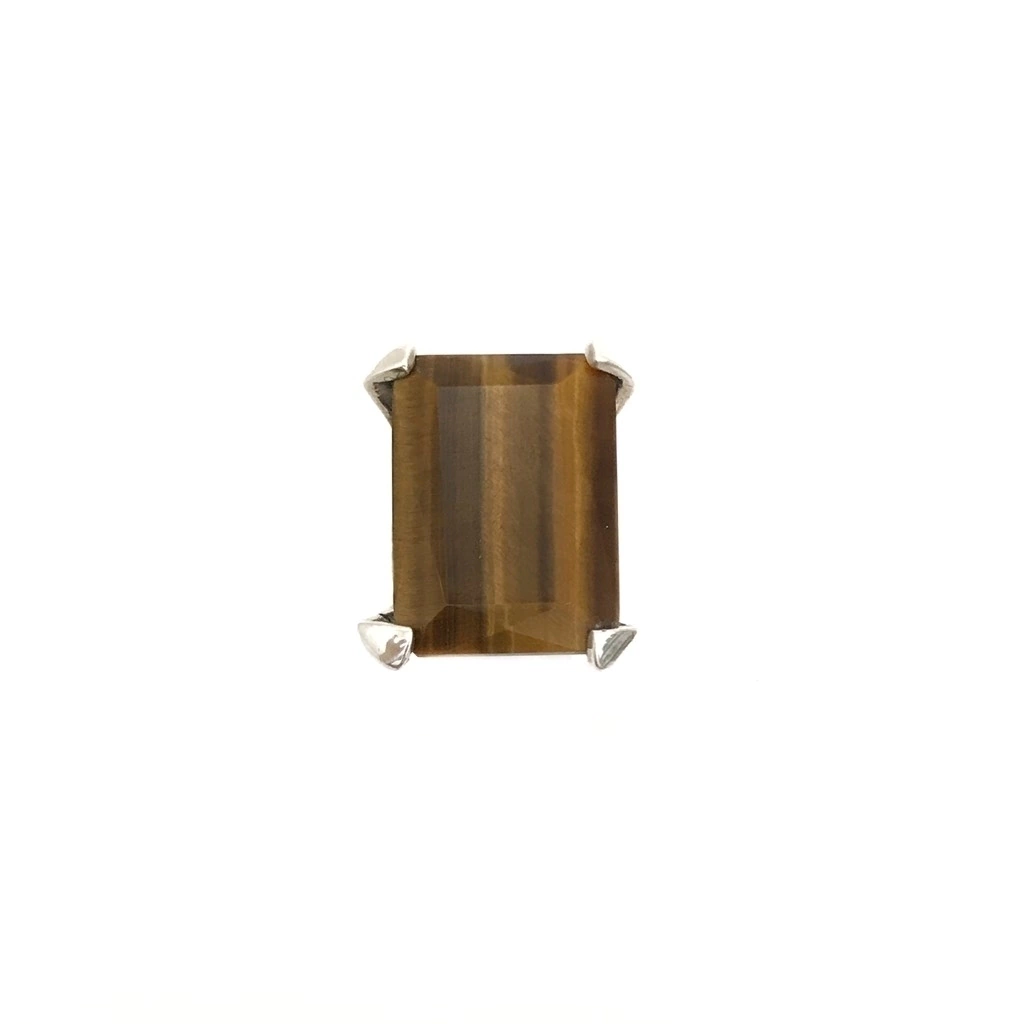Anel Olho de Tigre retangular com lapidação cabochão e com prata 925