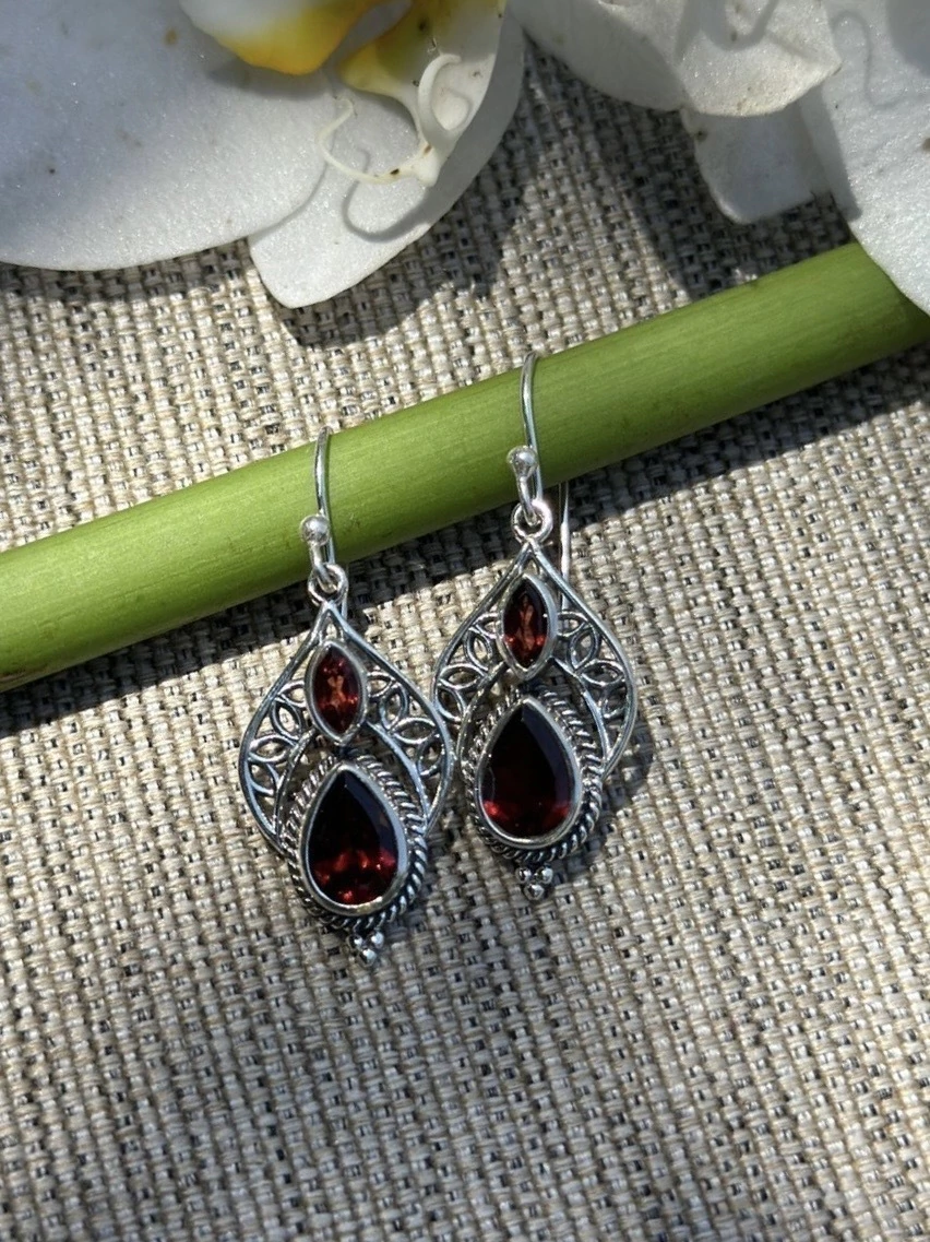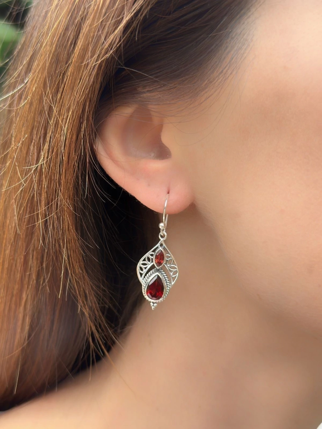 Brinco de pedra lapidada com gancho de prata com trabalho em prata envelhecida, tipico da ilha de Bali, Indonésia