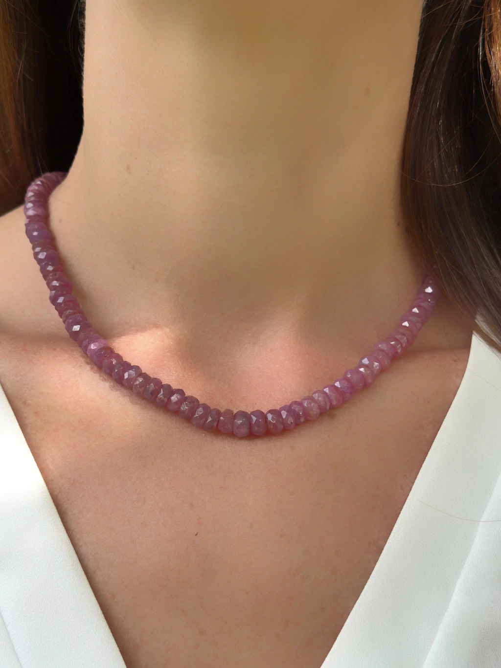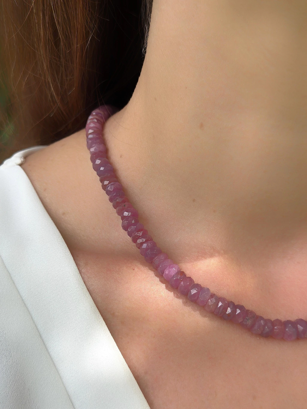 Colar de Rubi com lapidação rondel. Uma peça clássica, encantadora que ao mesmo tempo é versátil!