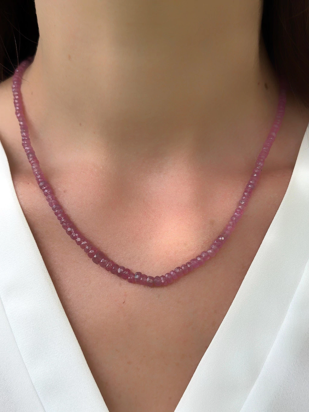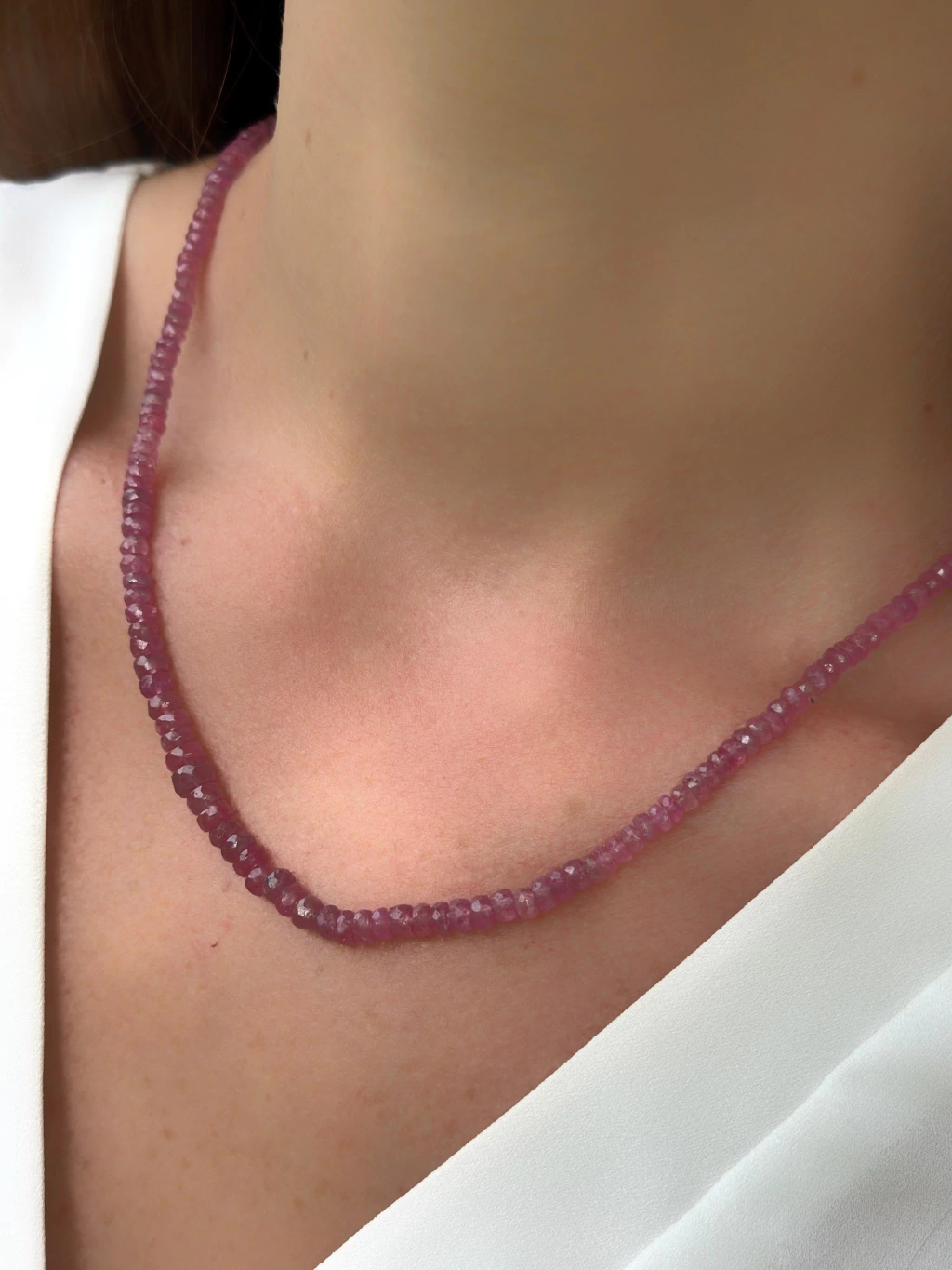 Colar de Rubi com lapidação rondel. Uma peça clássica, encantadora que ao mesmo tempo é versátil!