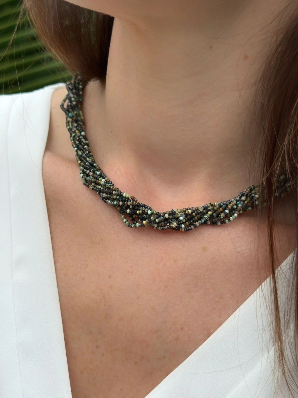 Encordoamento 100% artesanal: Os colares são produzidos por nossa equipe, eles são feitos à mão com Pedras naturais e fio de poliamida, ou nylon – evite molhar para que o fio não estrague, mas caso algum fio arrebente, entre em contato conosco que lhe daremos total assistência!