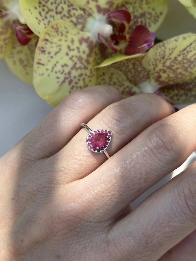 Conjunto de Rubi - uma excelente opção de presente! Conjunto completo e encantador de pedras lapidadas. Todo produzido em prata 925 + acabamento de ródio. Esse conjunto inclui: brinco, anel e pingente com corrente.